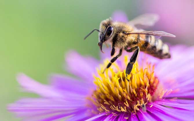2、花蜜采集:蜜蜂的口器属于咀嚼式口器,不但可以吸取花朵中的蜜汁,而且在吸取蜜汁的同时还会用脚采集花粉,收集在后脚的“花粉篮”中,最后再用蜜将花粉固定成球状带回蜂窝。