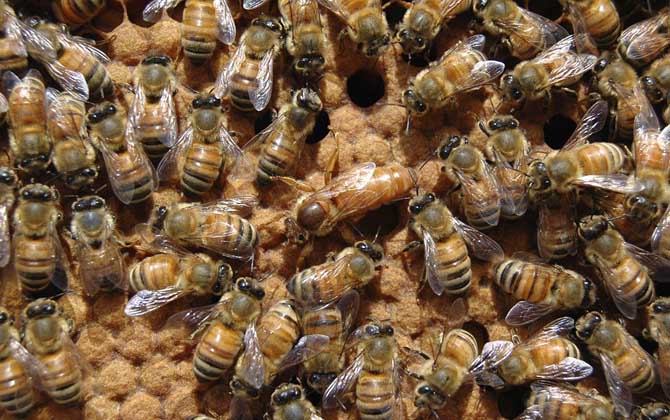 蜂王在蜂群中另一个作用便是分泌“蜂王物质”维持蜂群秩序,从这里来看似乎蜂王真的是蜂群的领导者,但事实也并非如此。首先,蜂王虽然能分泌“蜂王物质”,但“蜂王物质”是由工蜂传递的,怎么传?传多远?都是工蜂决定的。其次,工蜂在蜂群中传递“蜂王物质”简单的来说只是个其他工蜂一个信息,即蜂王依旧安然的存在,从而起到稳定蜂群的作用。因此,表面上是蜂王通过分泌“蜂王物质”来控制蜂群的秩序,但事实上是工蜂传递“蜂王物质”来维持蜂群的秩序。