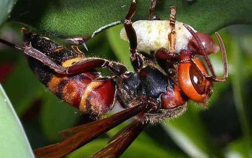 1、日本大黄蜂:日本大黄蜂是大虎头蜂的一个亚种,分布于日本,我大虎头蜂最有名的一个亚种,工蜂体长可接近45毫米,腹部为明亮的且较粗的橙黄色圆环和黑色圆环。