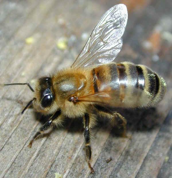 东北黑蜂是我国唯一的地方优良蜂种,蜂王有2种类型,一种是全部为黑色,另一种是腹部1~5节背板有褐色的环纹,工蜂有2种类型,一种是几丁质全部呈黑色,另一种是第2、3两腹节背板两侧有较小的黄斑且胸部背板上的绒毛为黄褐色,雄蜂只有一种黑的体色。